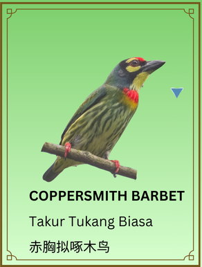Coppersmith Barbet: Mike Nelson (Thailand-Oct 2006 Xeno Canto Ref# XC56569)